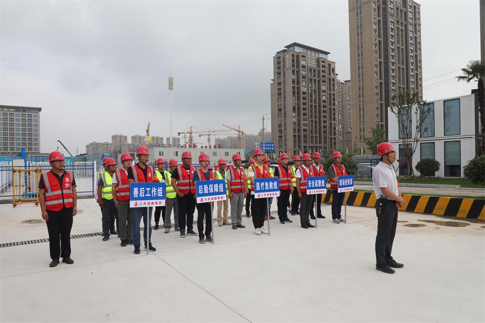 揚建網(wǎng)訊 為認真貫徹落實習近平總書記的一系列重要講話精神,健全安全生產(chǎn)責任落實,檢驗重點項目在建工程應急救援預案的可行性和操作性,提高員工的安全意識以及在緊急情況下的應變和自救能力,6月24日上午,揚州頤和醫(yī)療健康中心項目組織開展安全事故應急救援演練,項目部全員參與應急演練。城控集團、城建置業(yè)以及我集團公司領(lǐng)導現(xiàn)場觀摩。