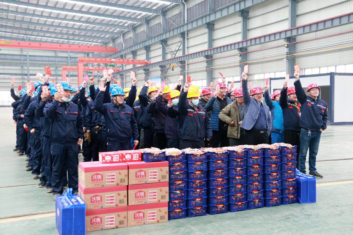 在鋼構(gòu)公司會議室,曹董事長一行分別給大家送去了新春祝福,并要求大家做好疫情防控與安全生產(chǎn)工作,做好“三保一預(yù)”工作,生產(chǎn)任務(wù)緊的同時要保安全、保質(zhì)量、保進度,高質(zhì)量發(fā)展。要求鋼構(gòu)公司經(jīng)營層切實關(guān)心外地留揚員工,做好他們的后勤保障工作。讓留揚務(wù)工人員在揚州度過一個健康、溫暖的安心年。