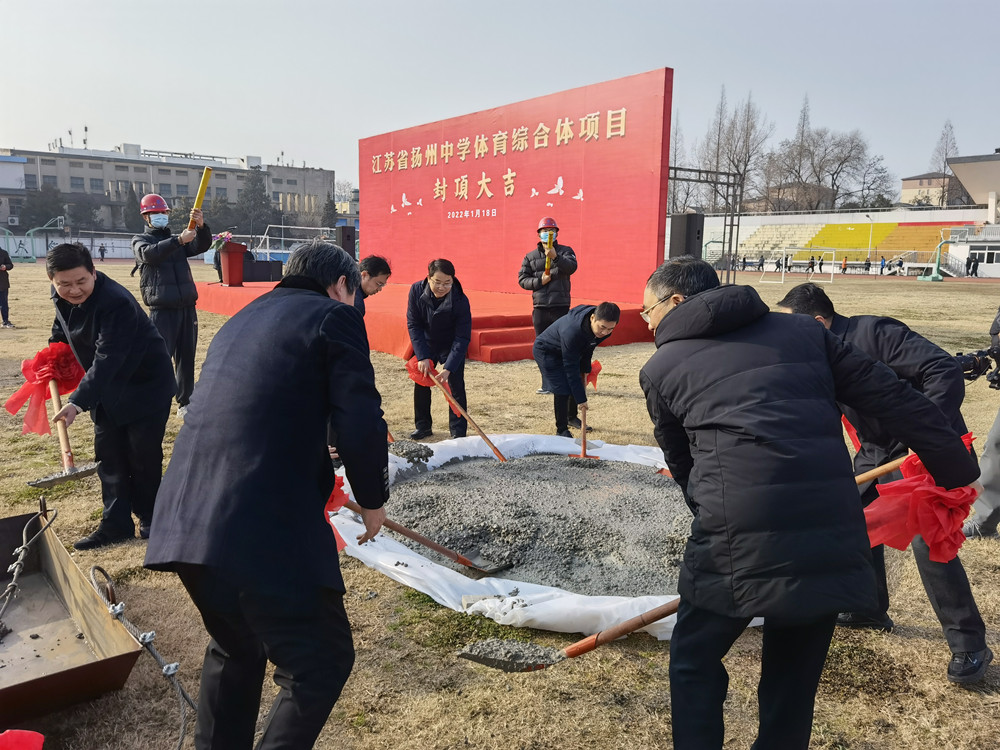 揚建網(wǎng)訊 2022年 1月18日,隨著最后一方混凝土的澆筑結(jié)束,由我集團(tuán)一公司承建的揚州中學(xué)體育綜合體項目主體順利封頂。揚州市教育局局長周應(yīng)華、揚州中學(xué)校長薛義榮、集團(tuán)公司總經(jīng)理鄒厚存、集團(tuán)執(zhí)行總裁陳滸、揚州科教集團(tuán)有限公司總經(jīng)理吳俊及相關(guān)參建單位人員均到場參加。
