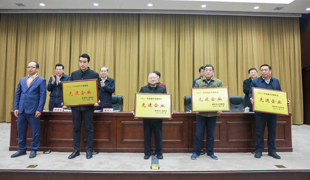 會(huì)議播放了2021年揚(yáng)州建筑業(yè)發(fā)展專(zhuān)題片,通報(bào)了2021年度全市建筑業(yè)先進(jìn)單位和先進(jìn)個(gè)人。我集團(tuán)榮獲“江蘇省建筑業(yè)百?gòu)?qiáng)企業(yè)綜合實(shí)力類(lèi)第15名”;集團(tuán)公司、江蘇運(yùn)揚(yáng)工程建設(shè)有限公司、江蘇華發(fā)裝飾有限公司、揚(yáng)州市樁基集團(tuán)有限公司、揚(yáng)州華瑞建筑勞務(wù)有限公司榮獲“揚(yáng)州市建筑業(yè)先進(jìn)企業(yè)”。王思遠(yuǎn)、沙寶忠獲“江蘇省五一創(chuàng)新能手”和“江蘇省住房城鄉(xiāng)建設(shè)系統(tǒng)技能標(biāo)兵建筑施工安全員”;李煒獲得“揚(yáng)州市杰出項(xiàng)目經(jīng)理”稱(chēng)號(hào);蔣畢忠、張煒瑋、王振、徐家匯、彭建勇獲“揚(yáng)州市建筑業(yè)優(yōu)秀項(xiàng)目經(jīng)理”稱(chēng)號(hào);郭善祥、周融、晏金宏、唐亞軍獲“揚(yáng)州市建筑企業(yè)優(yōu)秀班組長(zhǎng)”稱(chēng)號(hào)。