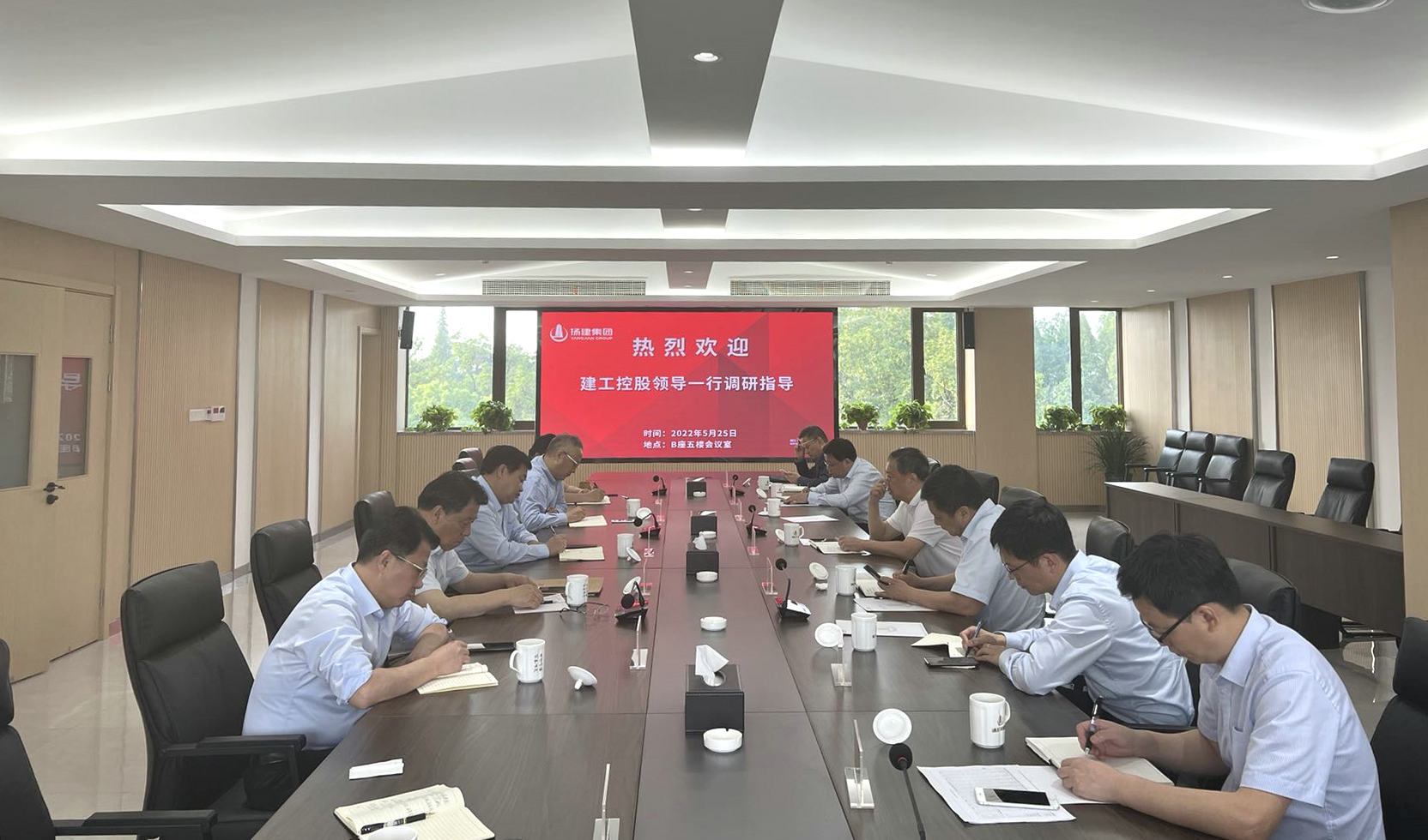 揚(yáng)建網(wǎng)訊 為做好市建工控股公司五屆二次董事會(huì)相關(guān)準(zhǔn)備,5月25日下午,市建工控股公司董事長(zhǎng)王宏率總會(huì)計(jì)師李長(zhǎng)棟及相關(guān)部門負(fù)責(zé)人蒞臨我集團(tuán)調(diào)研工作。調(diào)研會(huì)議在集團(tuán)總部B座五樓會(huì)議室召開(kāi),由建工控股黨委委員、總會(huì)計(jì)師李長(zhǎng)棟同志主持。我集團(tuán)公司董事長(zhǎng)康往東及梁云彪、呂國(guó)兵、陳滸等集團(tuán)領(lǐng)導(dǎo)出席了調(diào)研會(huì)議。