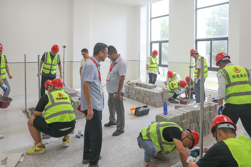 揚建網(wǎng)訊 7月5日,揚建集團砌筑工企業(yè)自主職業(yè)技能等級認定工作在揚建產(chǎn)業(yè)園展開,共計32名一線職工參加了此次砌筑工(五級/初級工)職業(yè)技能等級認定工作。本次認定嚴(yán)格按照國家職業(yè)標(biāo)準(zhǔn)規(guī)范和揚州市人社局相關(guān)要求,采用“理論測試+實操考核”模式對考生進行綜合評價,并通過省人社平臺對認定合格者頒發(fā)職業(yè)技能等級證書。