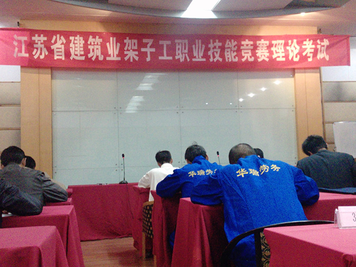 2010年11月2日,華瑞勞務(wù)公司4名腳手架搭設(shè)專業(yè)員工,代表我集團參加了由江蘇省總工會、省建工局、省人力資源和社會保障局共同組織舉辦的江蘇省建筑業(yè)腳手架搭設(shè)技能競賽的活動。