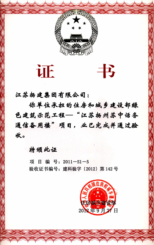 住房和城鄉(xiāng)建設(shè)部綠色建筑科技示范工程1項(xiàng)